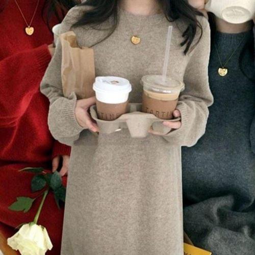 여성 데일리 베이직 니트 롱 원피스 봄 가을 심플 무지 하객용 니트 WFLLN1O
