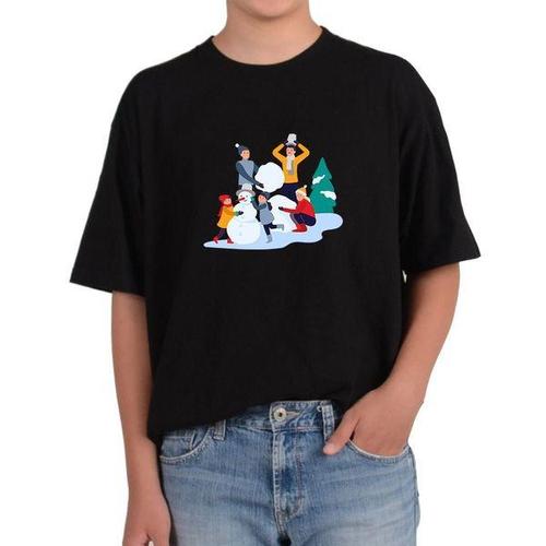 [에이치플러스몰]오버핏반팔티 겨울 눈사람 가족놀이 눈을 굴려 당근코 모자 그림 모든사이즈