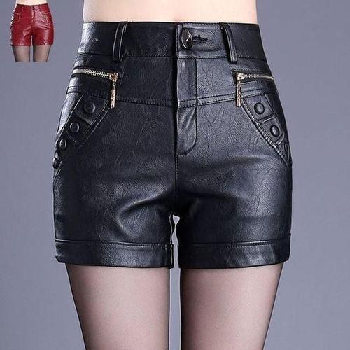여자 가죽 짧은 숏 하이웨스트 반바지 블랙 레드 WFL44UB