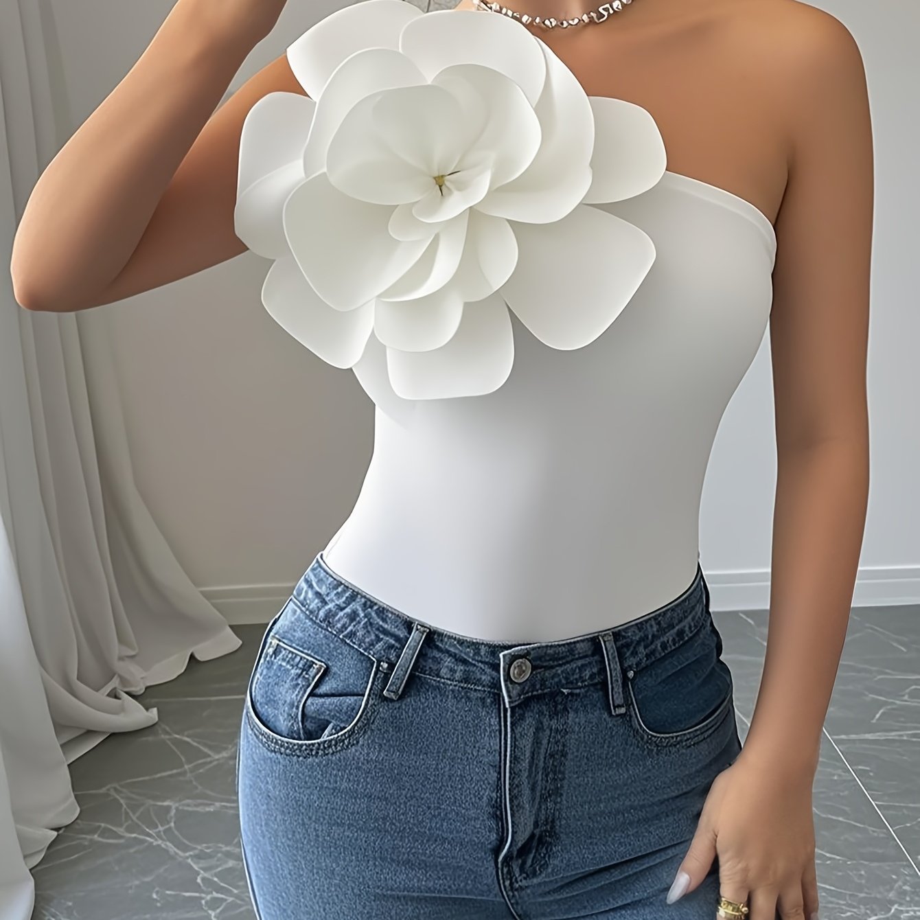 TEMU 플로럴 비대칭 넥 슬림 민소매 캐주얼 탑
