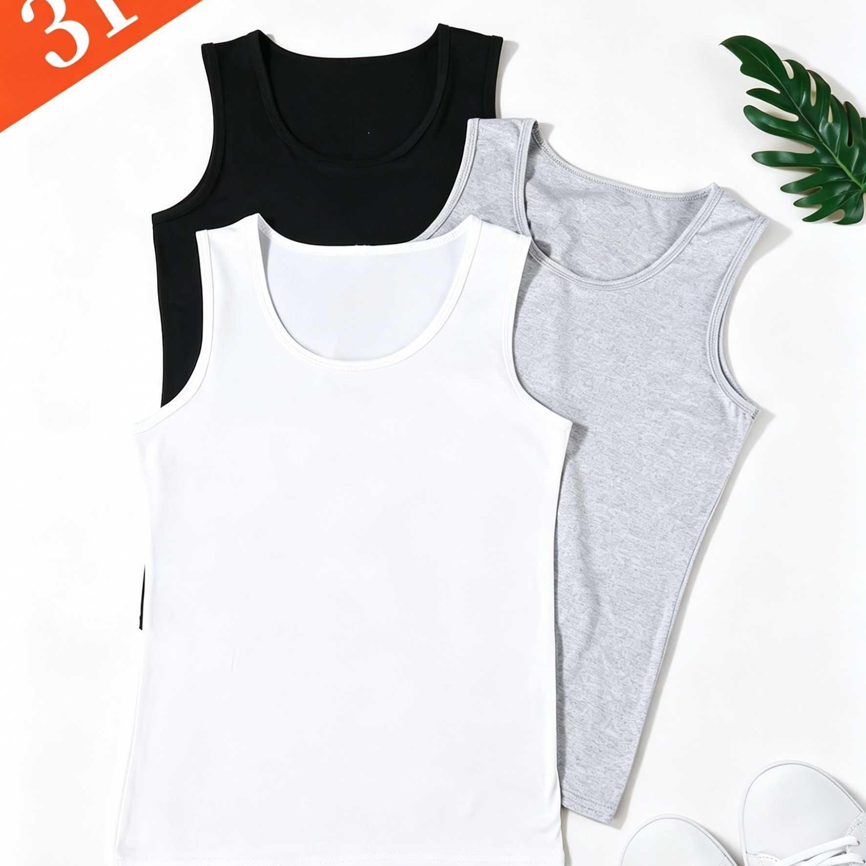 TEMU 3pcs 여름 신상 여성 민소매 티셔츠 캐주얼 다용도 기본 라운드넥 단색 이지 베스트 세트
