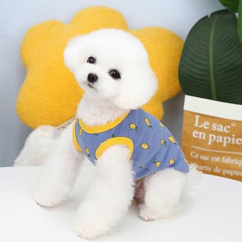 [셀럽하우스]반려견 EEKK0239 귀여운 레몬 패턴 데일리 골지 민소매 티셔츠