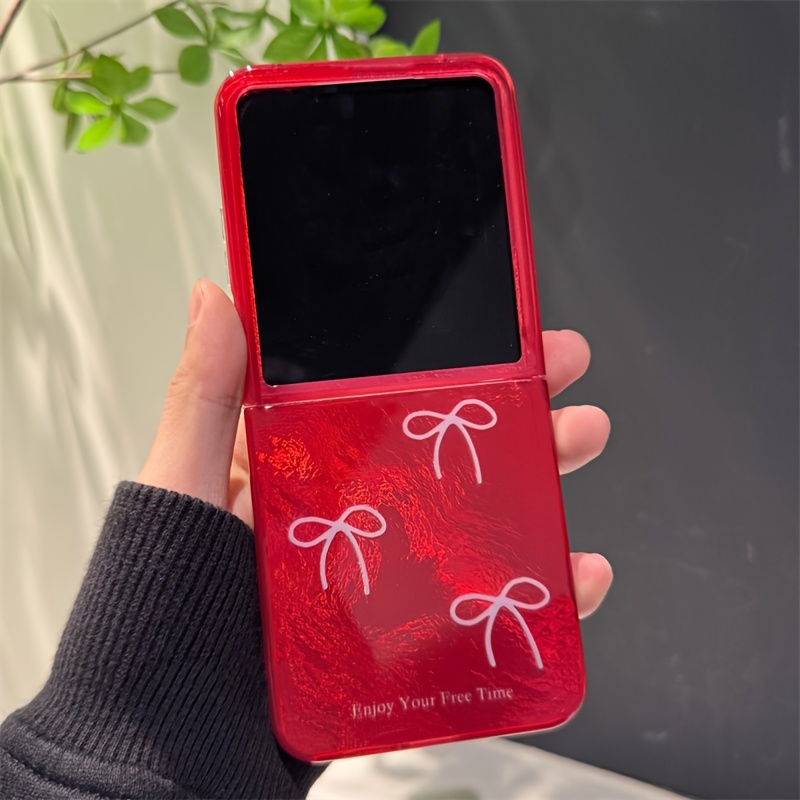 TEMU 폰 케이스: 스위트 화이트 보우노트 반투명 레드 블링 틴 포일 패턴 삼성 갤럭시 Z 플립 7 ZFLIP6 ZFlip5 Zflip4 3 5G 럭셔리 샤이니 글레이셔 카드스톡 보호 백커버