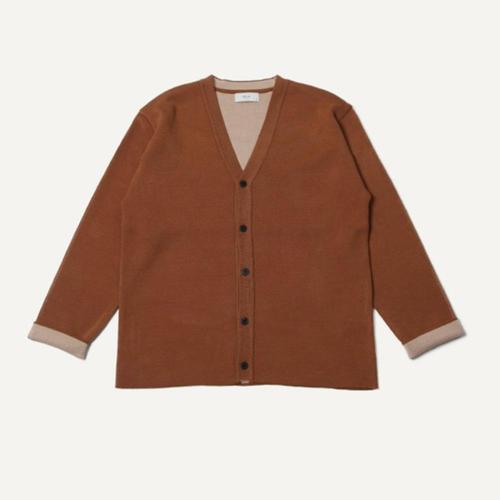 [옷자락] [시즌오프]배색 이중지 스웨터 루즈핏 V넥 니트 가디건_5