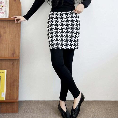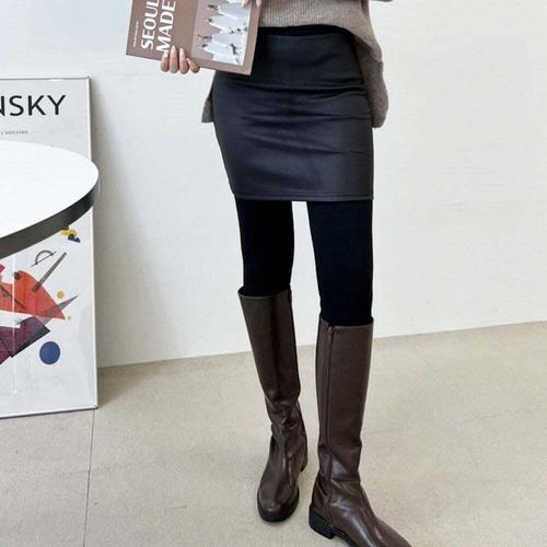 [셀럽하우스]따뜻한 XELW4372 밍크퍼 소재 겨울 4부 패턴 여성 치마 레깅스