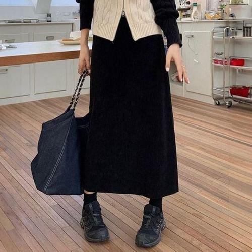 [에이치플러스몰]여성롱스커트 코듀로이 일자 골지스커트 겨울롱치마