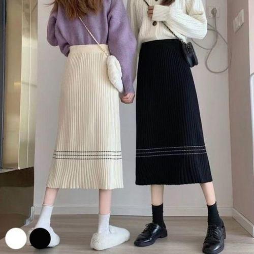 [에이치플러스몰]가을 롱 니트스커트 여성 겨울 고급 골지 스커트