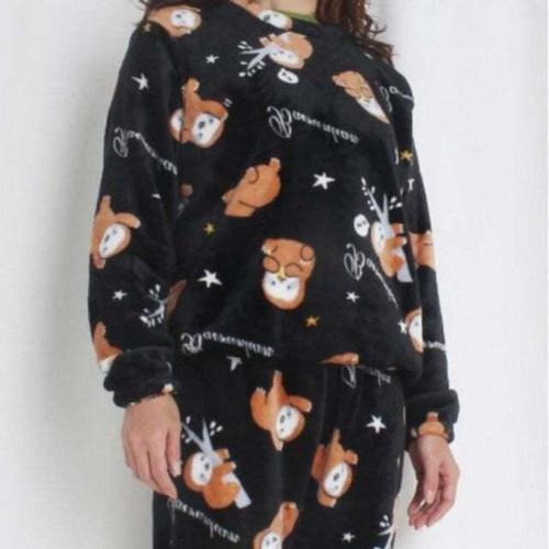 추운 겨울철 따스한 여성 수면 잠옷 쿠키베어 블랙