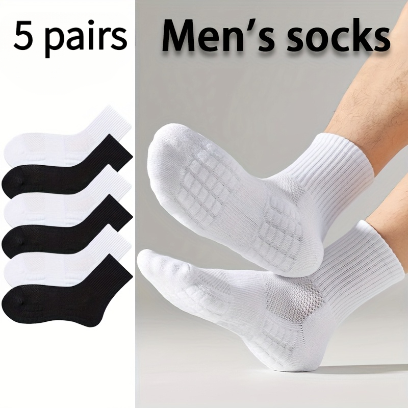 TEMU 남성용 미드컷 스포츠 양말 5켤레 - 흡습성 및 통기성, 스포츠 및 캐주얼웨어용, 블랙 앤 화이트, 세탁기 사용 가능 - 이상적인 크리스마스 선물