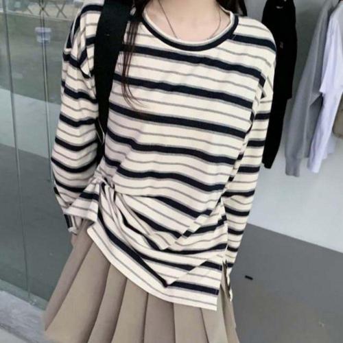 [오너클랜]인기상품 바이브모션 여성 어깨트임 오프숄더 배색 니트 긴팔티 [WFM0G6T_260205]