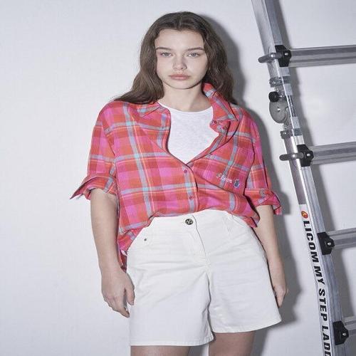 [올리비아로렌][올리비아로렌] 고양이 자수 체크셔츠VVCNL5M3441 (P003792705)