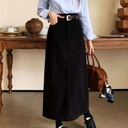 [오너클랜]인기상품 슬림핏 골덴 롱 스커트 여성용 A라인 데일리 하객룩 [WFLL052_260304]
