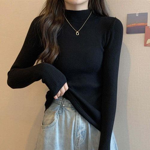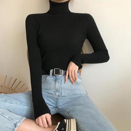 여성용 골지 반목 긴팔 니트 폴라 티셔츠 목폴라 티 WFLLQW2