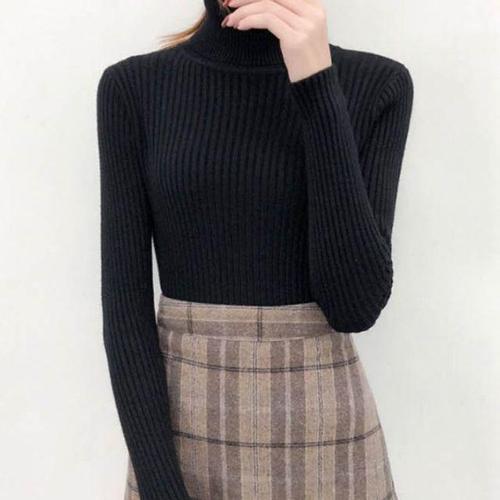 캐주얼 여성 겨울 목 폴라 골지 니트 긴팔 티셔츠