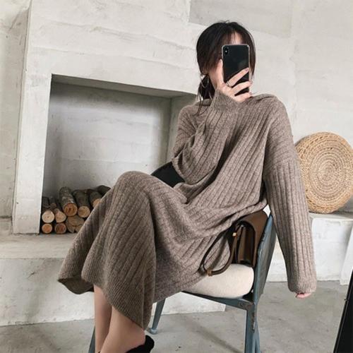 [오너클랜]인기상품 여성용 골지 후드 니트 롱원피스 브라운 봄 가을 겨울 데일리 하객룩 [WFLKZAH_260304]