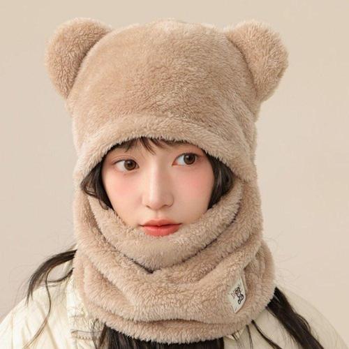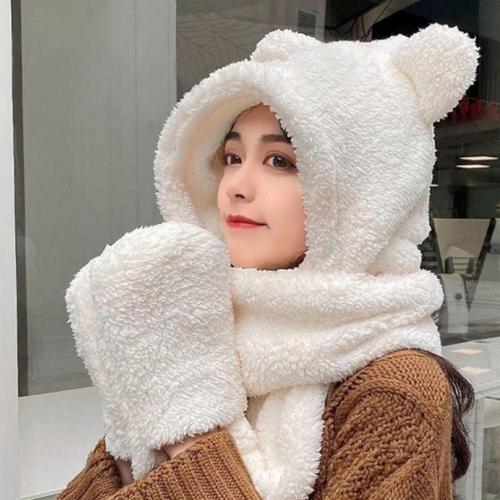 남여공용 곰돌이 모자 일체형 목도리 양털 장갑 머플러