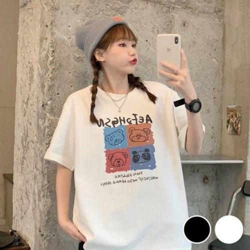[오너클랜]인기상품 캐릭터곰 캐주얼 로고프린트 루즈핏하프슬리브 상티 [WFLEK1N_260415]