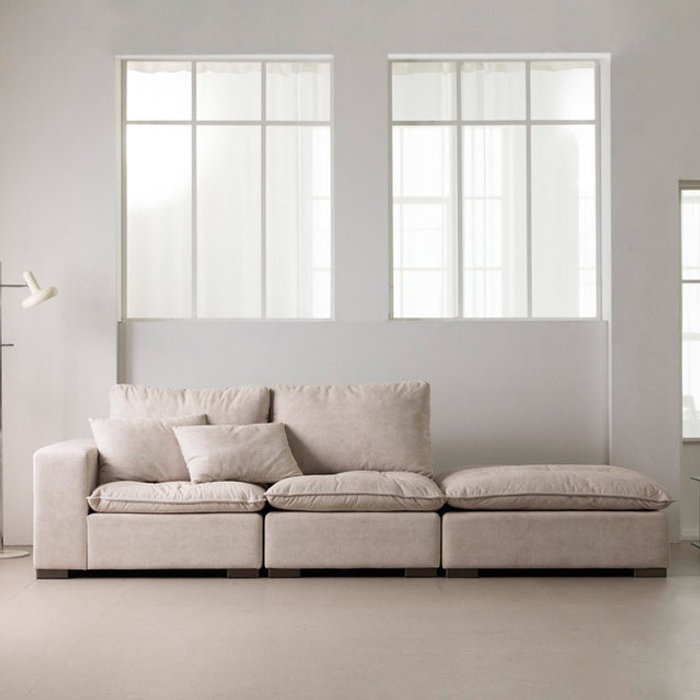 라자가구 엘루아 구스 조야 패브릭 기능성 쿠션 푹신한 소파 3인용 +스툴