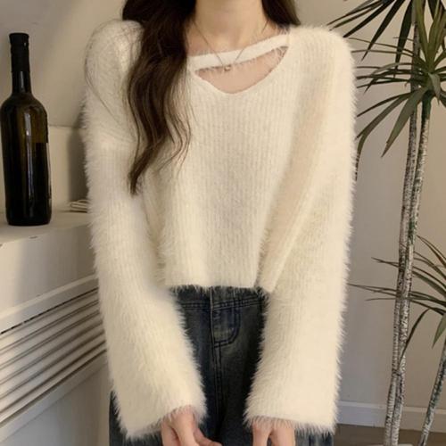 [오너클랜]인기상품 니트 긴팔 퍼지 크롭 데일리 V넥 스트랩 [WFLPUNT_260420]