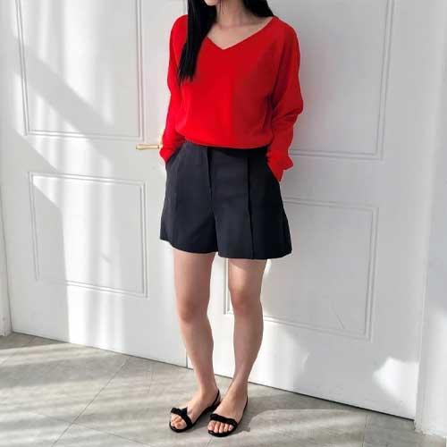 [릴룸]26SS 브이넥 쿨 반팔 니트 티