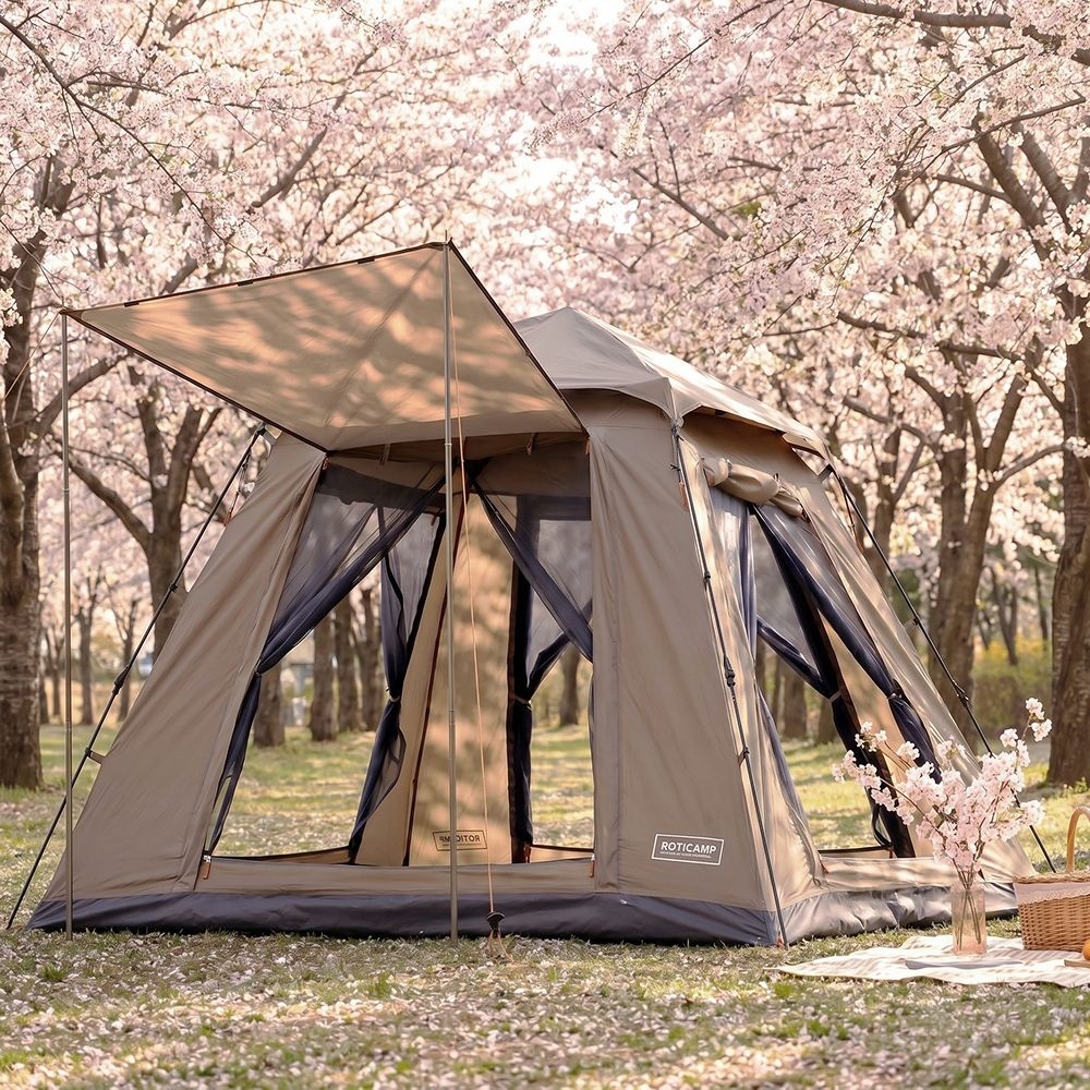 로티캠프 육각 자동 대형 방수 감성 캠핑 그늘막 돔 원터치 텐트 4윈도우