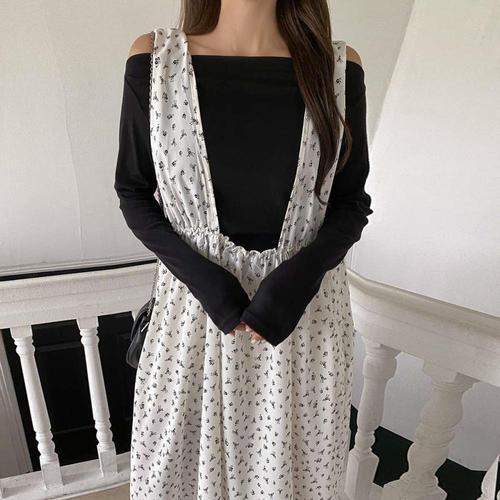 [미라클세븐]여성 키치 스타일 플로럴 루즈핏 뷔스티에 롱 드레스