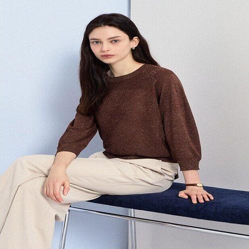 [다잇템]여성 SS 소매 U넥 스웨터 글리터 반소매 티셔츠