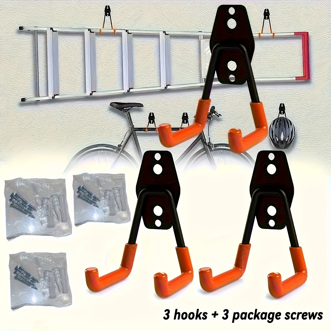 TEMU 6개입 - 고강도 차고 벽걸이 후크 - 산업용 스틸 벽걸이 수납 랙, 간편한 설치를 위한 사전 드릴링 디자인, 공구, 자전거, 사다리, 원예 장비를 위한 공간 절약형 후크, 차고, 작업장에서 사용 가능
