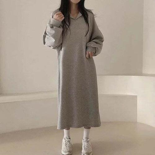 여성 후드 원피스 롱 기모 옆트임 루즈핏 데일리룩