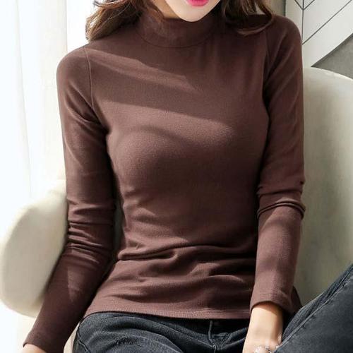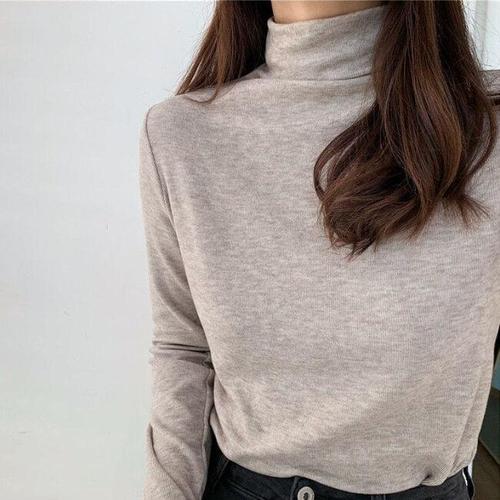 여성 가을 폴라티 목 폴라 티셔츠 슬림 기모 터틀넥 WFING7O