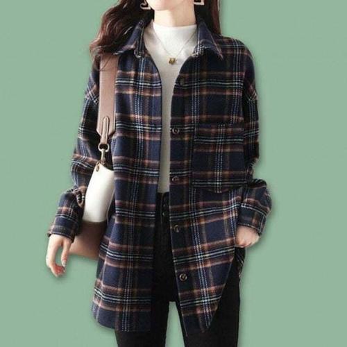 [셀럽하우스]여성 AWSO4885 기모 데일리 가을 롱 보온 예쁜 체크 셔츠 여자