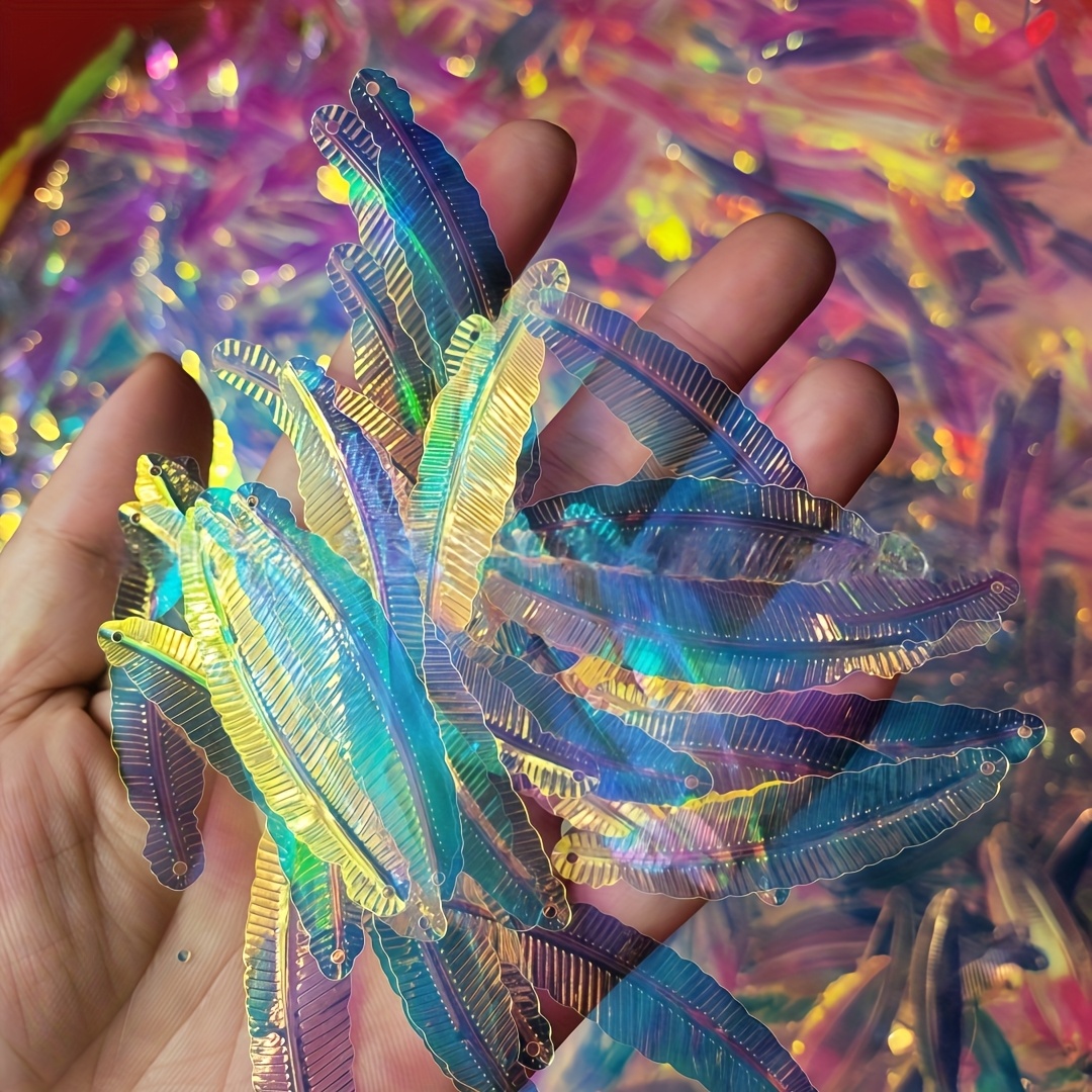 TEMU 2홀 100개/15g/봉지 파티 핸들링 장식 깃털 모양 글리터 팩 내열성 대용량 공예 파티 스팽글 세트, 전문가용 혼합 스팽글, 웨딩 장식, 의류 장식, 패션, 홈 데코 & 파티 공예용