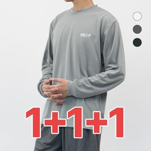원플러스원 / 남성 봄 여름 쿨론 쿨티 냉감 기능성 긴팔 무지 라운드 티셔츠 스판 빅사이즈 작업복