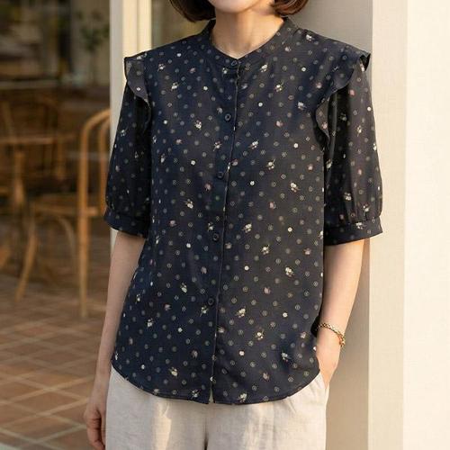 브이넥 거즈면 블라우스 OSM-1007026 잔꽃블라우스