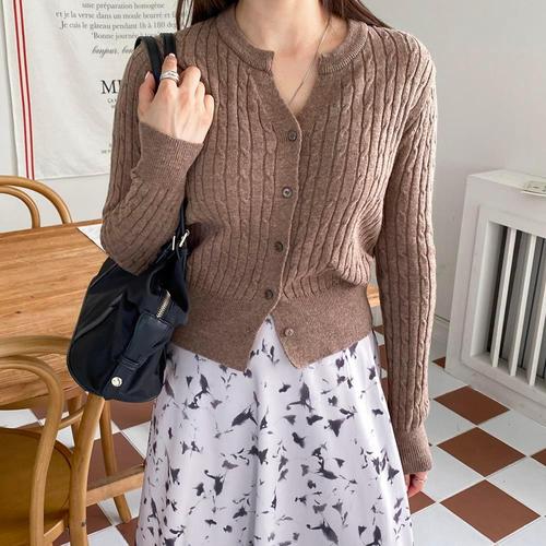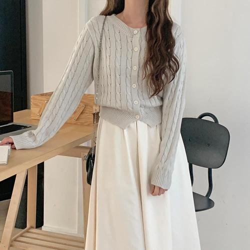 [옷자락] 여성용 부드러운 아크릴 꽈배기 라운드넥 가디건