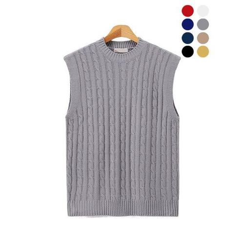 [셀럽하우스]남성 WNLL5462 베스트 심플한 남자 꽈배기 니트조끼 캐쥬얼코디