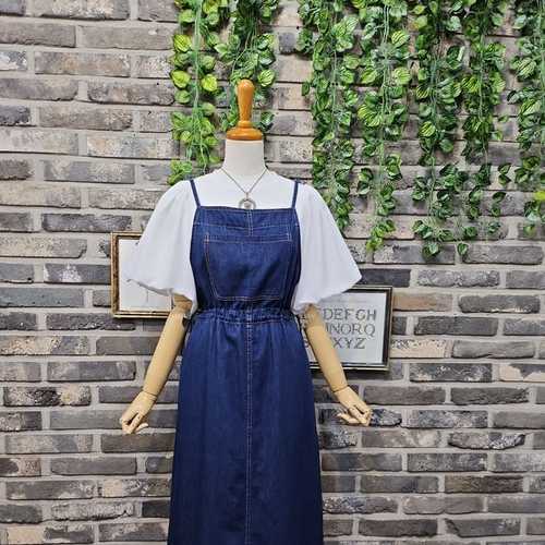 캐주얼 양옆 스트링 포켓 끈나시 데님 청 원피스
