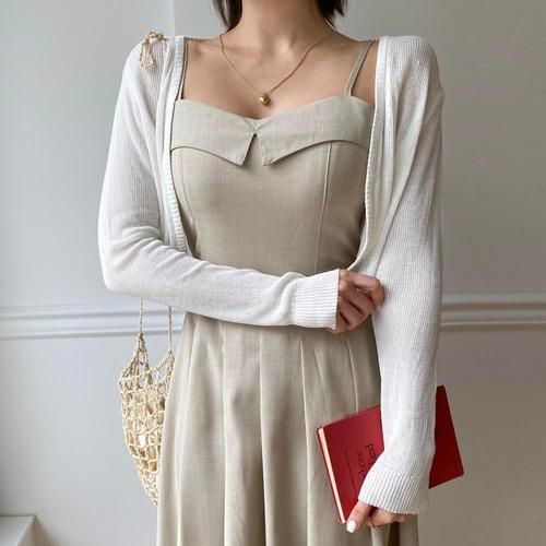 [옷자락]여자 끈나시 롱 원피스 볼레로 세트