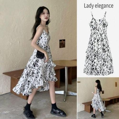 미중 여성 여름 뉴 끈나시 미디엄 나시 고급 날씬 기질 민소매 플라워 원피스 cy