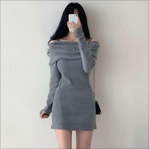 [오너클랜]인기상품 여성 여리여리 오프숄더 끈나시 슬림핏 니트 미니원피스 2색 [WFKN9IV_260410]