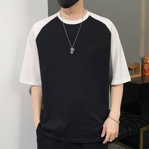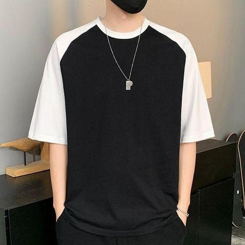 [에이치플러스몰]심플 베이직 남성 투톤 배색 나그랑 반팔 티셔츠