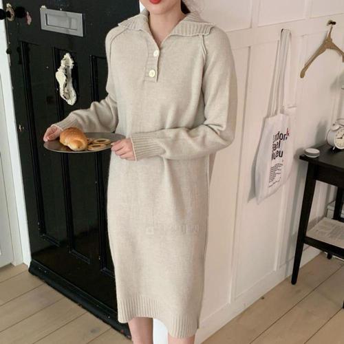 [다잇템]여자 카라 피터팬 라글란 반소매 롱원피스