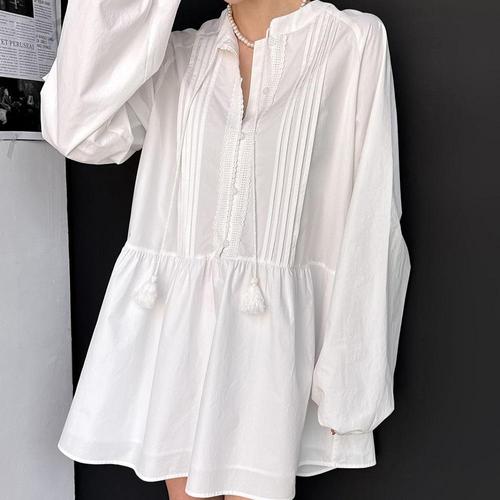[옷자락] [시즌오프]레이스 핀턱 나그랑 태슬 흰색 러블리 미니원피스_5