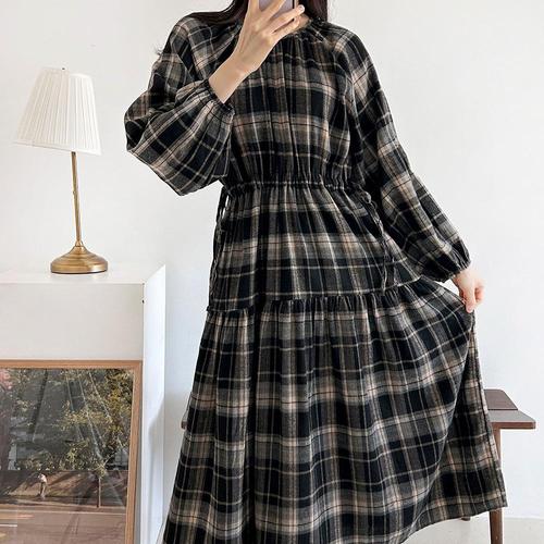 [옷자락] [시즌오프]체크원피스 캉캉 스트랩 박시핏 나그랑 롱원피스_5