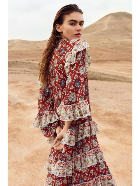 [에이치엔엠] 플라운스 튜닉 드레스 브라운/플로럴 1333517001