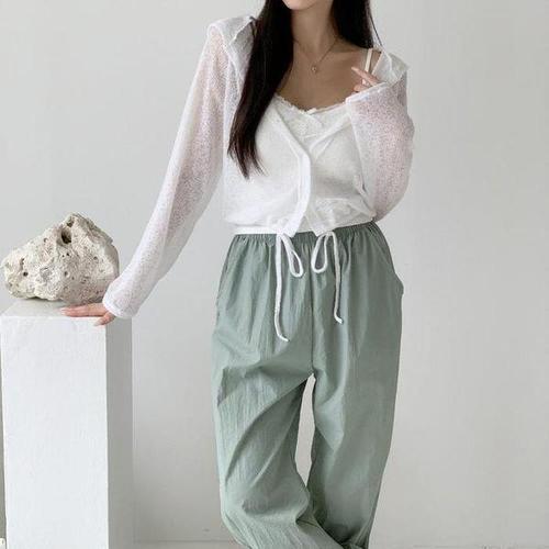 키치 시스루 리본 민소매 레이스 크롭 이너 나시