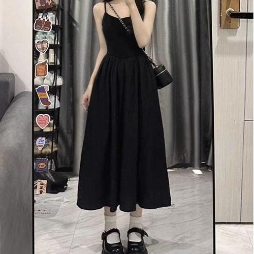 여성 플리츠 민소매 롱 여름 끈나시 프렌치 스타일 허리끈 원피스