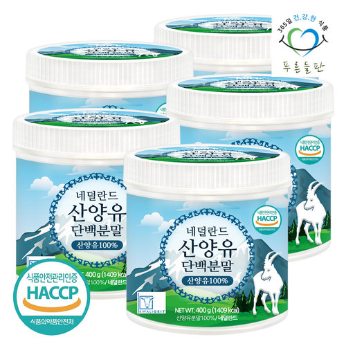 [푸른들판] 네덜란드 산양유 단백 분말 100% 400gx5통 산양 우유 단백질 프로틴 가루 파우더