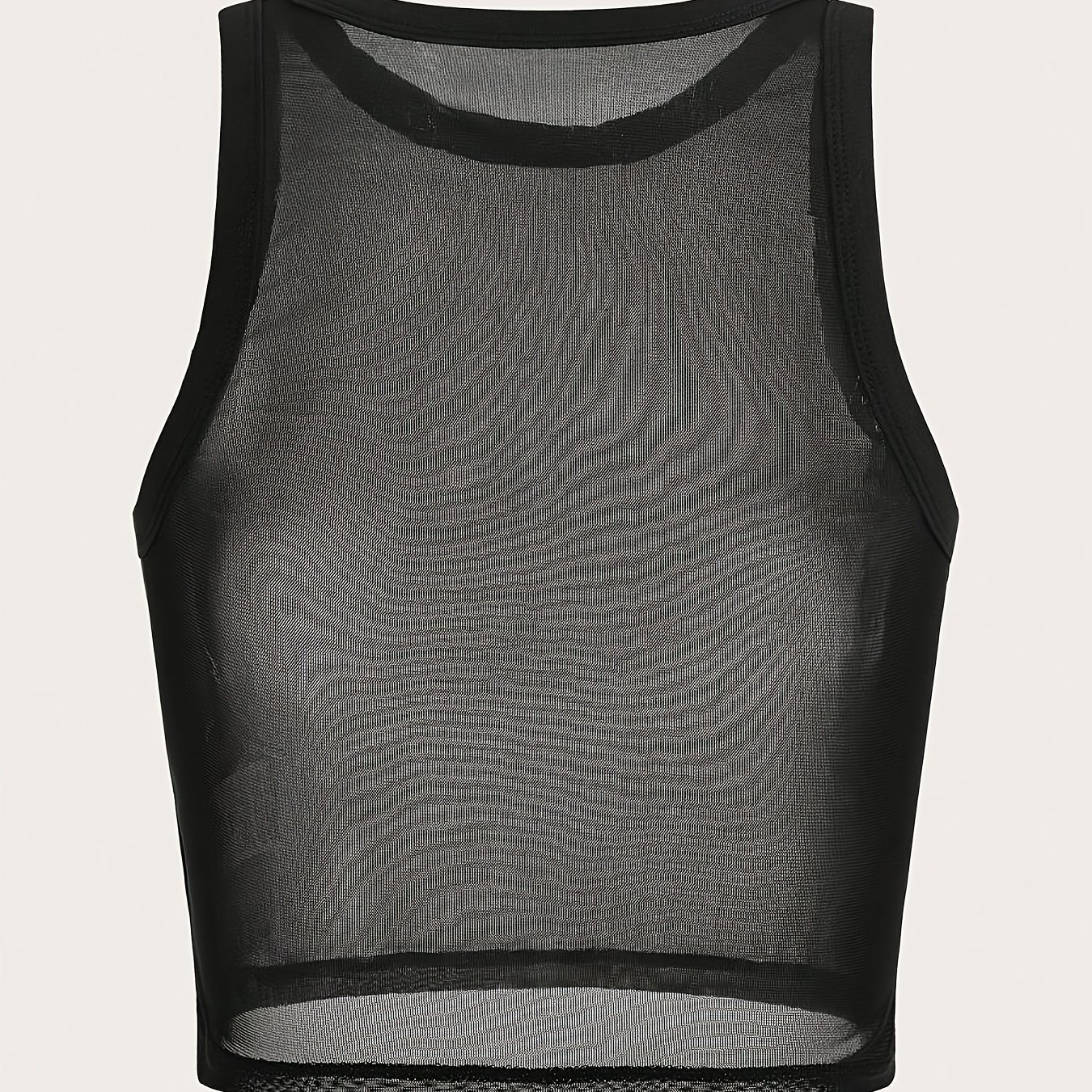 TEMU 블랙 메쉬 민소매 크롭 탑, 핏 잘 맞고, 스트릿 스타일에 완벽, 여성 데일리 출퇴근, 활용도 높은 베이스 레이어 셔츠