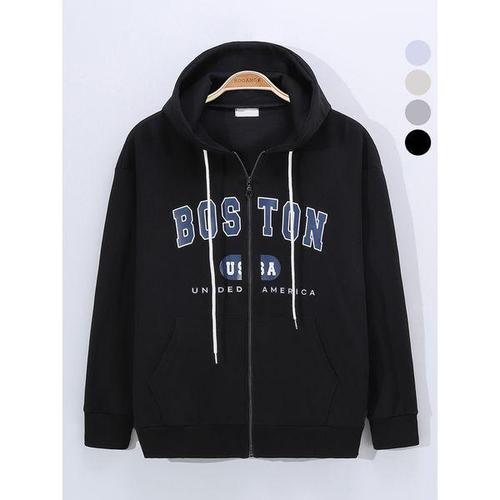 [후앙스]남녀공용 보스턴 프린팅 루즈핏 데일리 후드 집업 EYHD2118